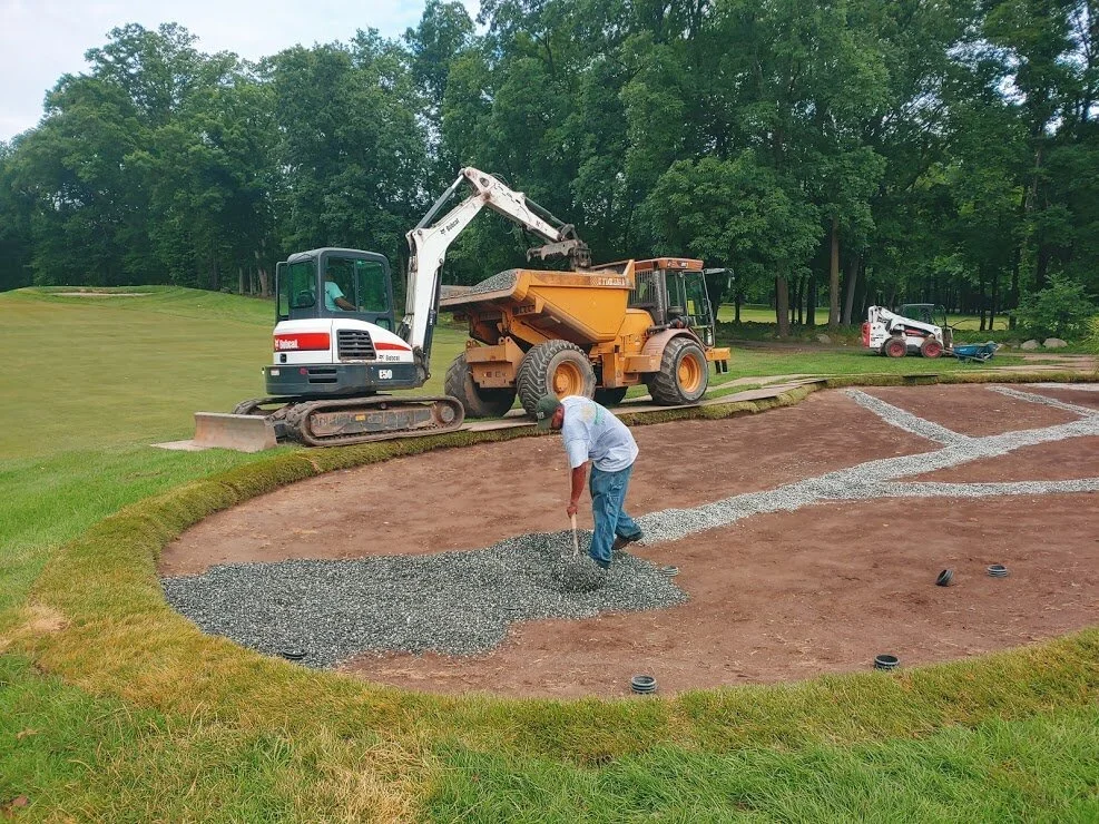 Installation of The Better Billy Bunker Method™ uses a polymer binder to stabilize the drainage stone beneath the bunker sand. No liner means clubs and rakes won’t get snagged and the bunker’s aesthetic appearance will remain intact for a longer period of time.